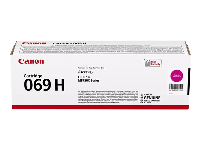 Bruk 069H magentafarget tonerkassett med høy kapasitet sammen med din kompatible laserskriver for å sikre alltid perfekte utskrifter. En full tonerkassett har en kapasitet på ca. 5 500 sider (ISO/IEC 19798), noe som gir deg den levetiden du trenger for å oppfylle alle dine utskriftsbehov.
