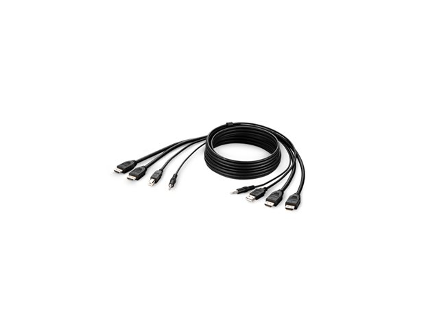 A Secure KVM Combo Cable is the easiest and neatest way to connect all your computers and servers to your KVM switches, providing image clarity for high-resolution applications as well as audio and USB connections. Every Belkin Secure TAA compliant KVM Combo Cable features high retention gold-plated connectors, Hook and Loop wire identification straps, and a black jacket. Belkin secure combo cables add high-performance, high-quality, and reliability to the SKVM application.
