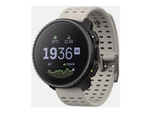 The Suunto Vertical sport watch is designed for athletes and adventurers seeking a durable device that keeps pace with their active lifestyle. With a robust glass fiber reinforced polyamide case and sapphire glass protection, it stands up to the toughest conditions, water-resistant up to 100 m. It features a comprehensive suite of sensors, including an altimeter, barometer, and digital compass, alongside advanced GPS/GLONASS/Galileo/BeiDou/QZSS navigation capabilities for precise tracking and route planning.