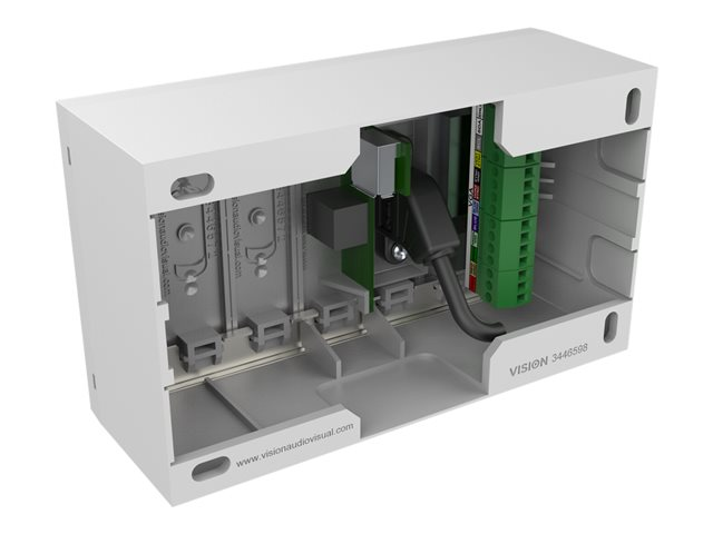 A "surround" which comes in two parts fits to a backbox (or "mudring" if your wall is hollow), then the modules fix in place to complete the installation. Techconnect is based around standard UK backbox sizes, and Vision also offers mounting hardware for other countries.