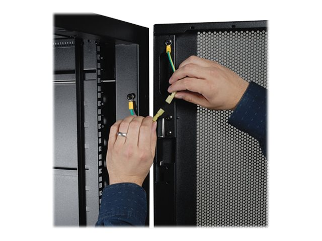All components of the SR42UBDP are grounded to the enclosure frame. Front and rear threaded grounding points are provided for connection to the facility earth ground. The removable front and rear doors feature quick-release ground wires.
