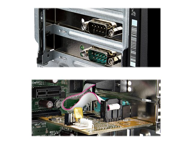 Add serial communication support to a small form factor (SFF) or full-size system, using this two-port serial card. RS-232 (DB9) support enables control and communication with serial peripheral devices.