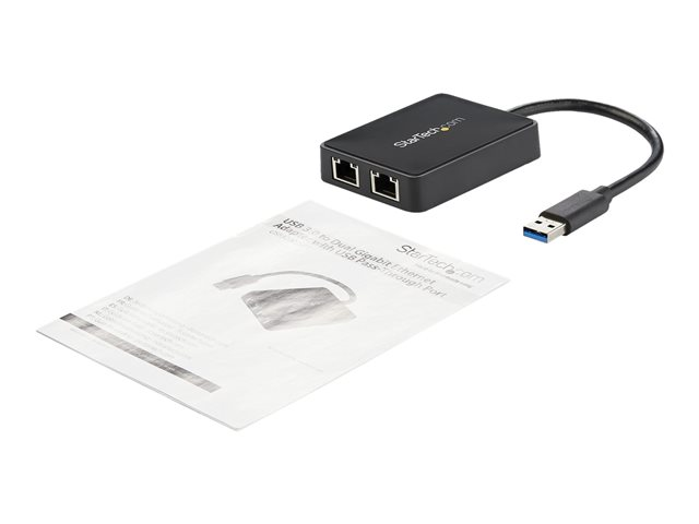 StarTech.com USB 3.0 to Dual Port Gigabit Ethernet Adapter w/ USB Port - 10/100/100 - USB Gigabit LAN Network NIC Adapter (USB32000SPT) - Nettverksadapter - USB 3.0 - 1GbE - 1000Base-T - 2 porter - svart USB32000SPT